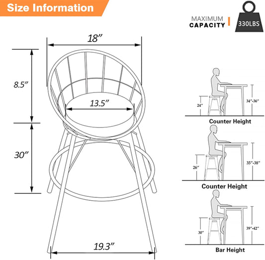 Premium Upholstered High Back Bar Stool Chairs, Set of 2, 25" Seat Height, Gray Polyester
