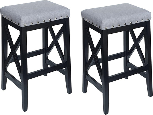 Premium Upholstered High Back Bar Stool Chairs, Set of 2, 25" Seat Height, Gray Polyester