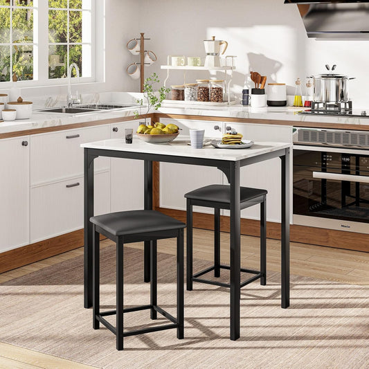 3-Piece Counter Height Dining Set for Two with Faux Marble Tabletop and Metal Frame, Ideal for Small Spaces and Apartments
