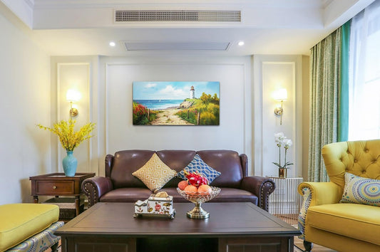 Ocean Coastal Beach Canvas Wall Art Living Room Painting Seascape Lighthouse ...