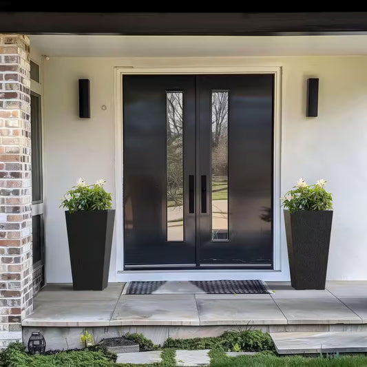 Set of 2 Tall 27.57-Inch Square Charcoal Black Plastic Planters for Indoor and Outdoor Use