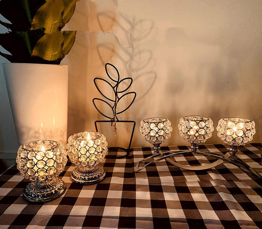 Elegant Silver Crystal 3-Arm Candle Holders - Unique Bling Tea Light Centerpiece