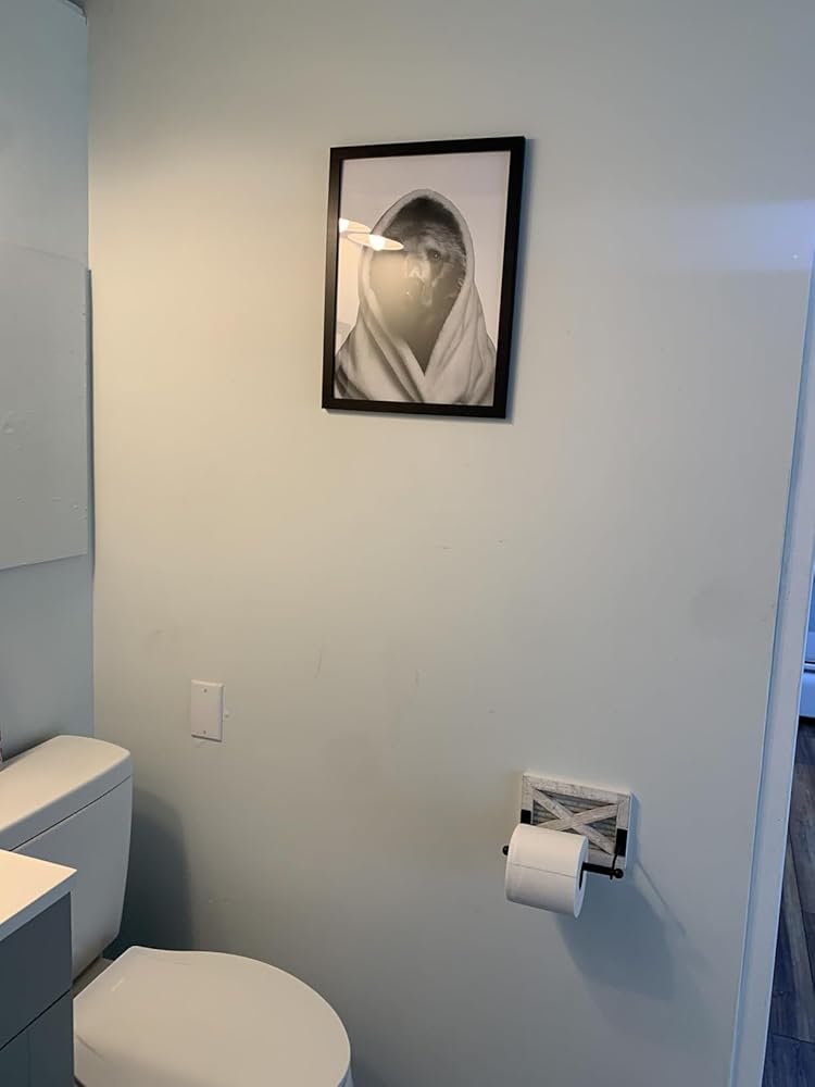 Add cozy charm to your bathroom with this farmhouse-style toilet paper holder, crafted from weathered wood and matte black galvanized metal. Its sturdy design fits large rolls and secures firmly to the wall—no wobbly hooks here! Perfect for cabin, country, or rustic bathrooms, it brings natural warmth and timeless style. Hardware included for easy installation.